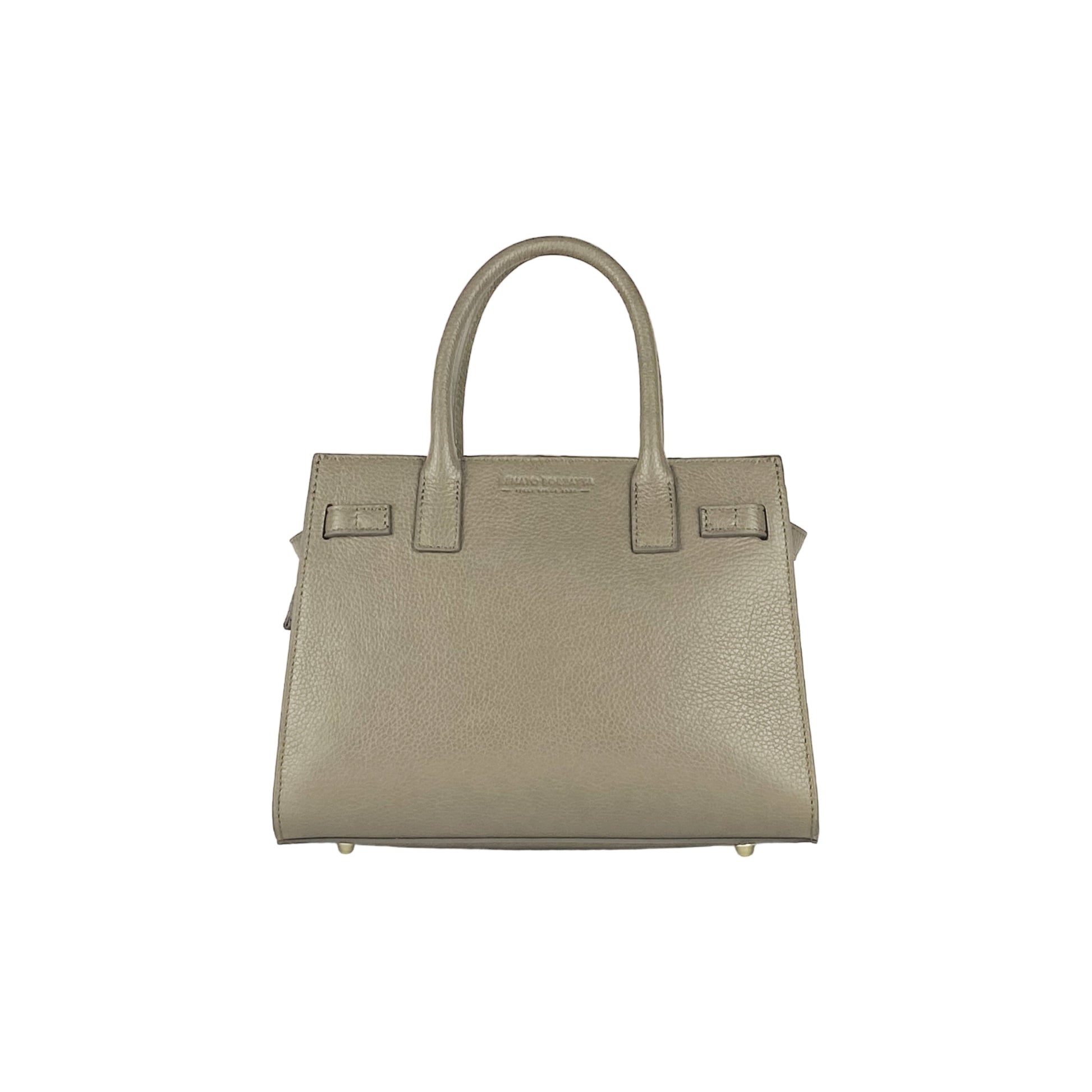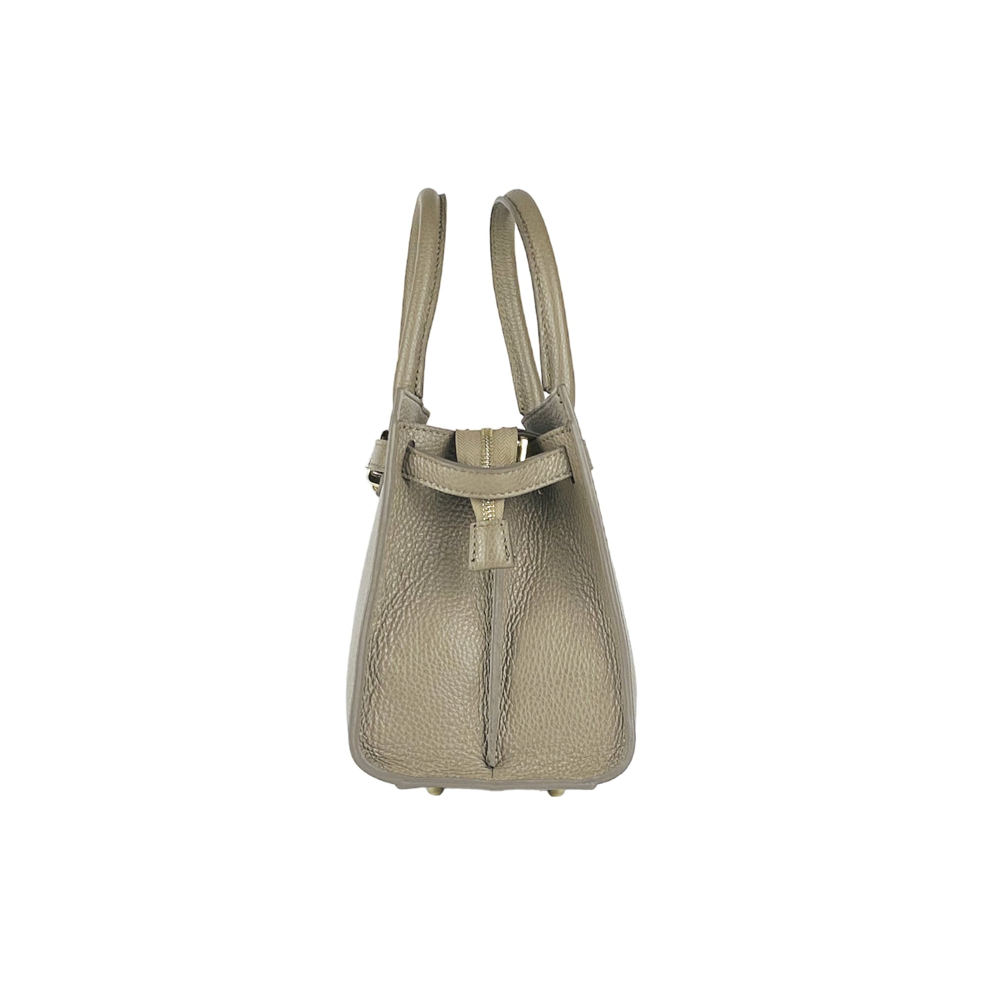 This handbag is designed and handcrafted entirely with top-quality leather. It is perfect for any occasion and complements any outfit. The Taupe color enhances its elegant and fashionable style.